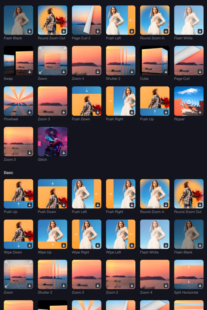 Explore 100M+ stock media, 2000+ titles, text, transitions, and 1000+ music tracks & stickers to boost your creativity.