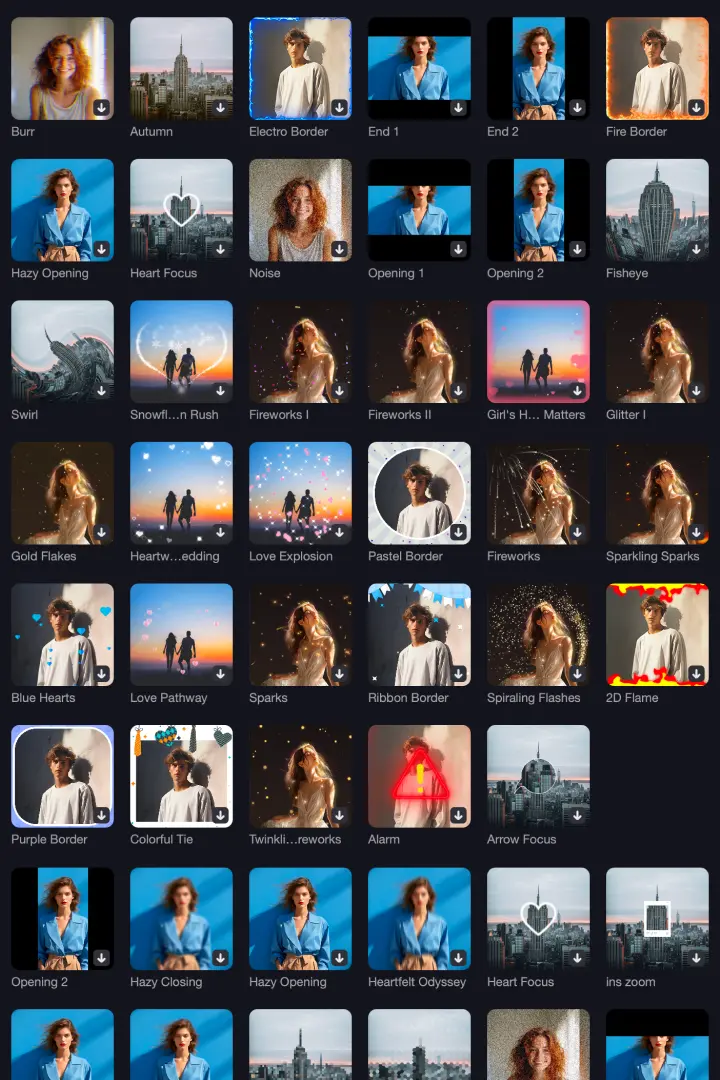 Explore 100M+ stock media, 2000+ titles, text, transitions, and 1000+ music tracks & stickers to boost your creativity.